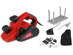 Высокое качество обработки благодаря мощному двигателю. Также отличительной характеристикой данного инструмента является большая глубина и ширина строгания. Рубанок возможно использовать в качестве станка, осуществлять выборку четверти. Комплект поставки: Стенд металлический - 1 шт. Мешок для сбора опилок - 1 шт. Параллельный упор - 1 шт. Ограничитель глубины выборки пазов - 1 шт. Фиксатор кнопки - 1 шт. Образцовая мера - 1 шт. Точильное устройство - 1 шт. Гарантийный срок - 2 года.