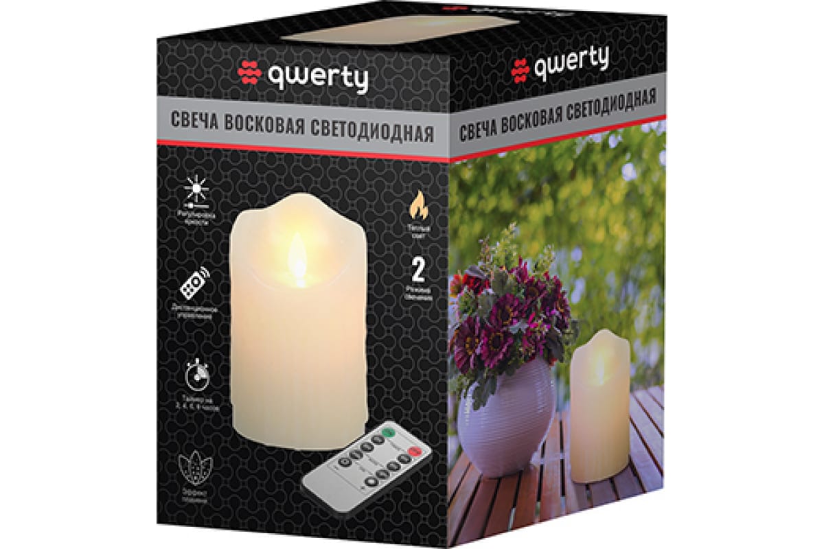 Многофункциональная светодиодная свеча QWERTY воск, 7,5x11,5 см, без батарейки, с пультом ДУ 75012 предназначена для создания приятной атмосферы.