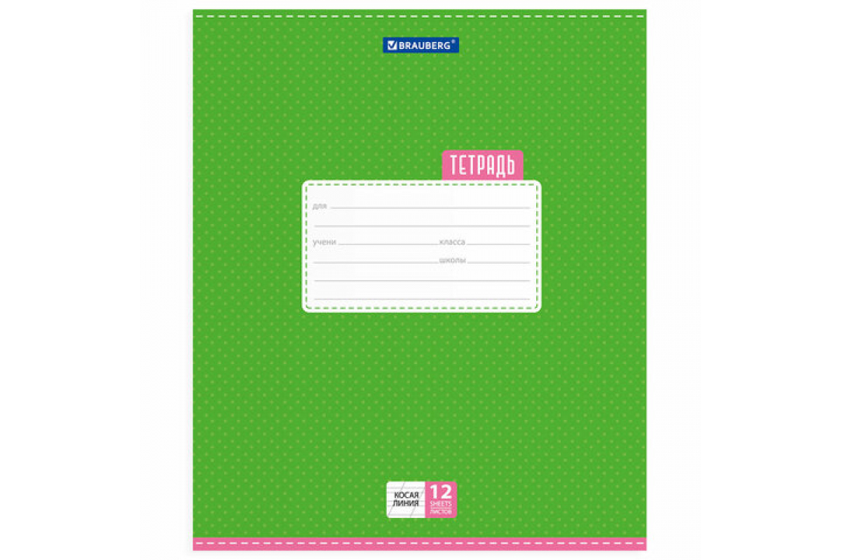 Тетрадь 20 шт в упаковке BRAUBERG 12л. косая линия обложка картон ТОЧКИ 103033