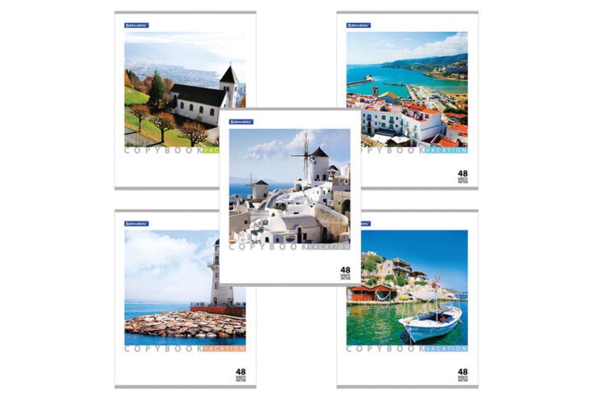 Тетрадь 10 шт в упаковке BRAUBERG А5 48л. ЭКО клетка обложка картон КАНИКУЛЫ 401819