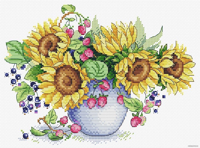 - Комплектация канва Аида №14, нитки мулине 25 цветов, игла, двухцветная схема и руководство по вышиванию