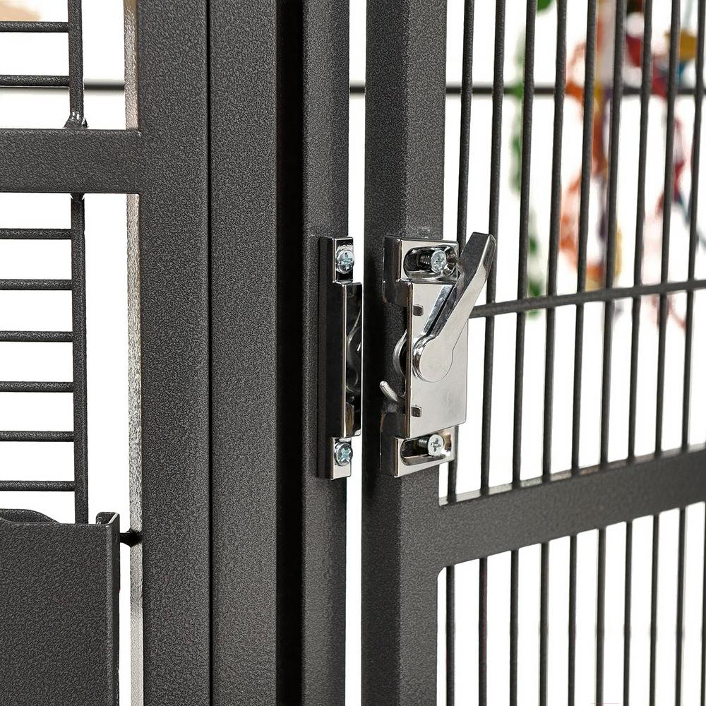 - Комплектация жердочка (2), кормушки (4 — с отдельными дверцами), выдвижной поддон (2)