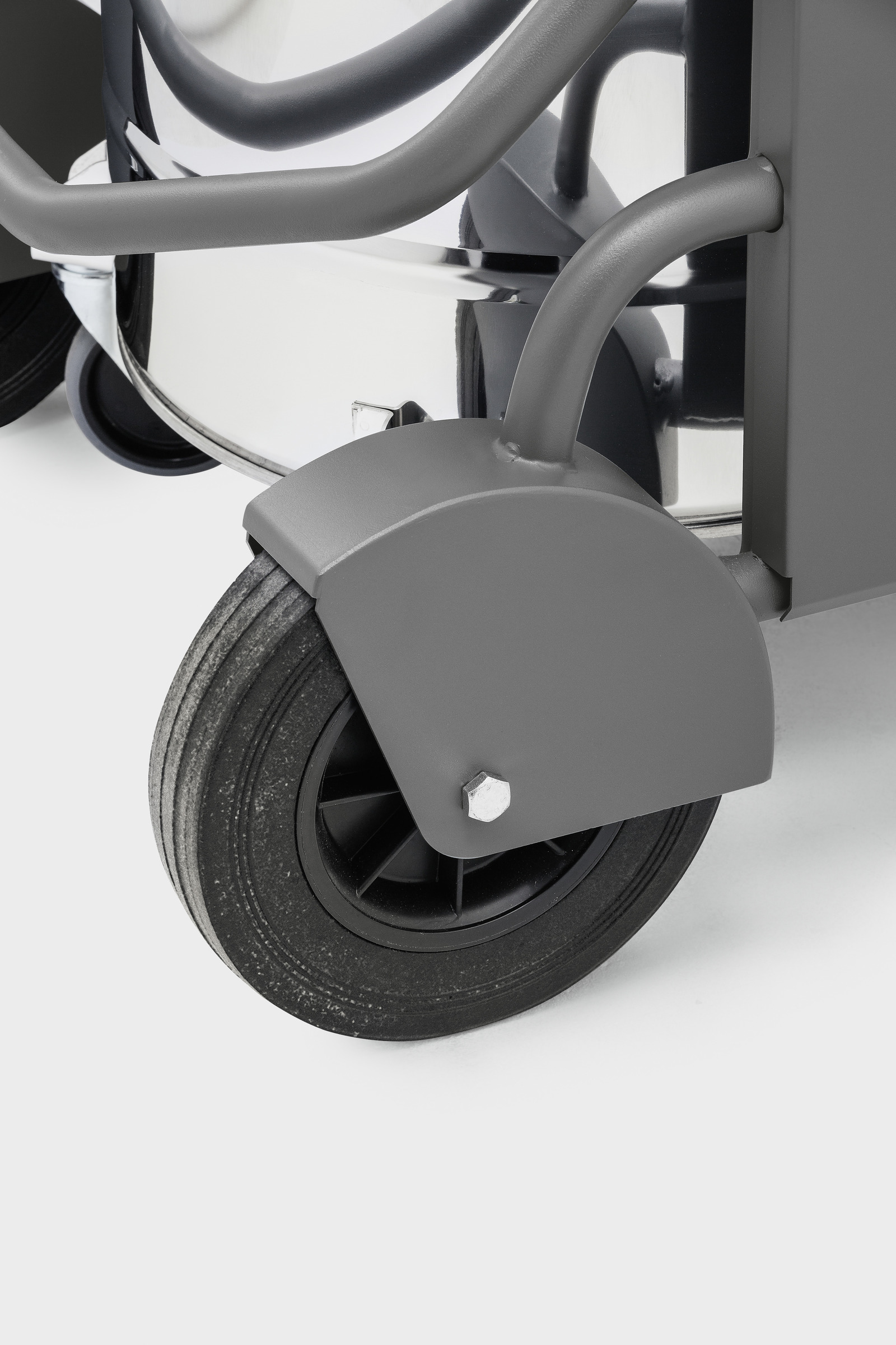 Благодаря легким шасси и большим колесам оператор может с легкостью передвигать пылесос. Данная модель оснащена сверхмощной турбиной, которая благодаря боковому каналу обладает значительно увеличенным сроком эксплуатации. Тип используемого электромотора дает возможность непрерывной эксплуатации.