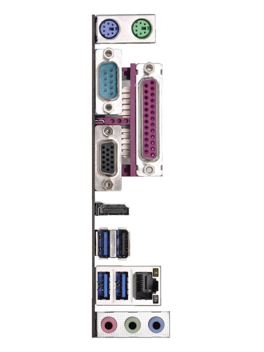 - Разъемы материнской платы COM; D-Sub; HDMI; LPT; PS/2; RJ-45; USB 2.0; USB 3.1 Gen 1