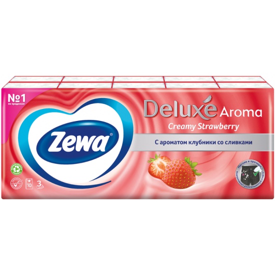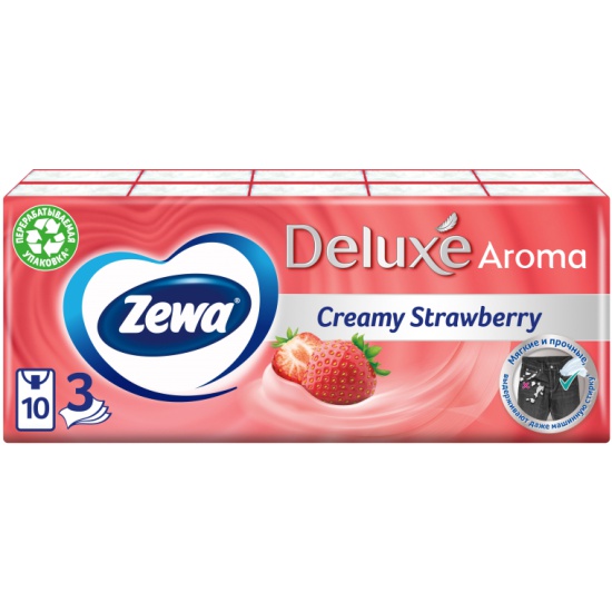 Бумажные платочки Zewa Deluxe Creamy Strawberry не только очень прочные, но еще и невероятно мягкие. Они заботятся о коже лица, чтобы вы всегда чувствовали себя комфортно и уверенно, независимо от маленьких неурядиц которые могут случиться, когда вы в дороге, занимаетесь спортом или в спешке наносите макияж. С бумажными платочками Zewa Deluxe в удобной индивидуальной упаковке c приятным ароматом клубники, вы сможете расслабиться, зная, что члены вашей семьи чувствуют заботу и комфорт.Все бумажные платочки Zewa имеют сертификат FSC™ (FSC-C003255). Покупая товары Zewa со знаком FSC™ (FSC-C003255), вы поддерживаете ответственное использование лесов.