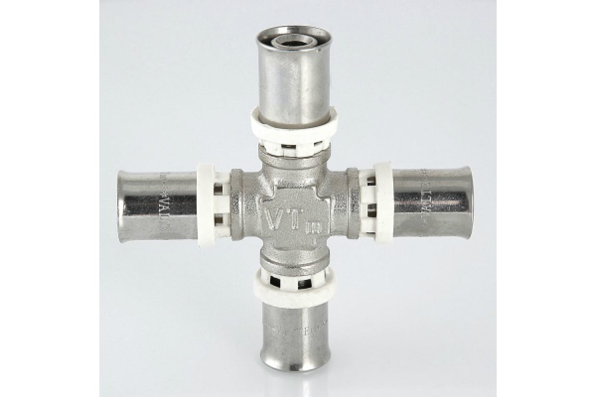Крестовина пресс 20х20х20х20 Valtec VTm.241.N.202020 - равнопроходной четырехсторонний фитинг для разветвления трубопровода из металлопластиковых труб или труб из сшитого полиэтилена. Изделие обеспечивает прочное и качественное неразъемное соединение, которое прослужит очень долгий срок. Подходит для монтажа в труднодоступные места, например, в пол.