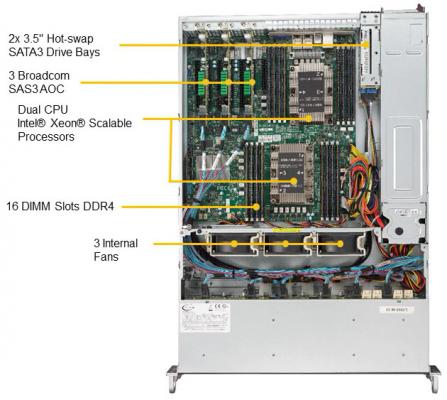 - Прочее Тип памяти: DDR4 Reg Количество слотов памяти: 16 Максимальный объем памяти: 4 Тб Тип HDD: SAS/SATA HDD, размерность: 2.5" RAID: 0, 1, 5, 10 Чипсет: Intel C622 Разъемы - 2 RJ45 10GBase-T LAN ports - 1 RJ45 Dedicated IPMI LAN port - 4 USB 3.0 ports (rear) - 1 VGA port - 1 Fast UART 16550 port / 1 Header