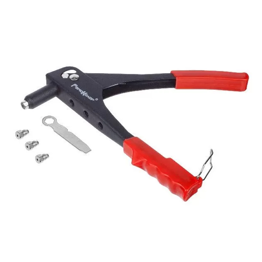 Заклёпочник механический РемоКолор 26-0-000 - ручной прибор, используется для скрепления металлических и других различных конструкций. Металлическая конструкция имеет устойчивость к большим нагрузкам. Корпус защищает внутренний механизм от повреждений или поломок при падении. Эргономичные ручки комфортно помещаются в руке при работе.