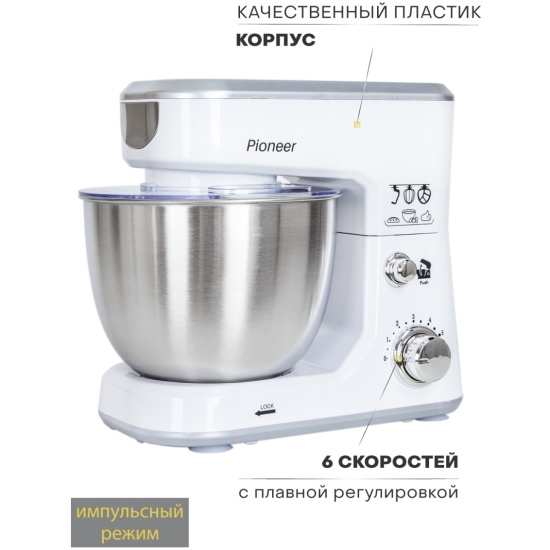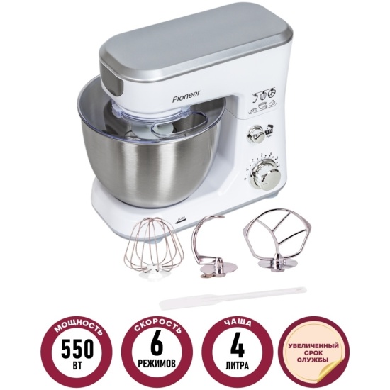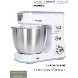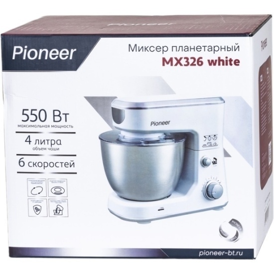 Миксер Pioneer MX326 белыйПланетарный миксер Pioneer MX326 мощностью 550 Вт со съемной чашей 4