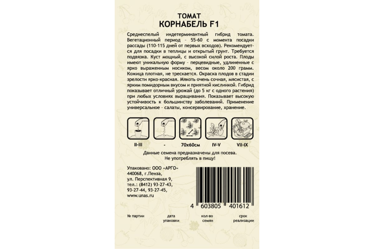 Семена САДОВИТА Томат Корнабель F1 3 семечки 00183308 подходят для выращивания на дачном участке.