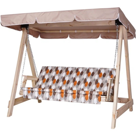 Качели LAURA OUTDOOR "Селена 3.0" Трехместные без покраски, бежевый тент (подушки листья) Selena 110