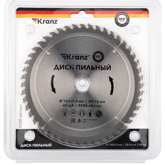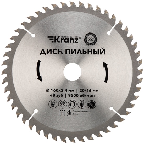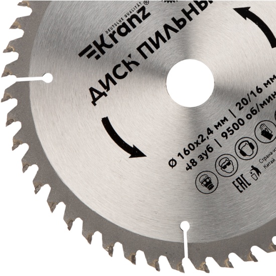 Диск пильный KRANZ диам. 160 мм, 48 зуб, посадка 20/16 мм KR-92-0108