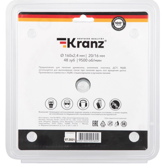 Пильный диск KRANZ предназначен для пиления древесины, алюминия, пластика, ДСП, МДФ. Используется для выпиливания пазов при пилении вдоль оси вращения диска. Применяется совместно с УШМ, стационарными и ручными пилами (особое внимание на допустимые обороты в минуту). Зубья оснастки оснащены твердосплавными напайками и имеют специальную заточку для качественной распиловки заготовок.