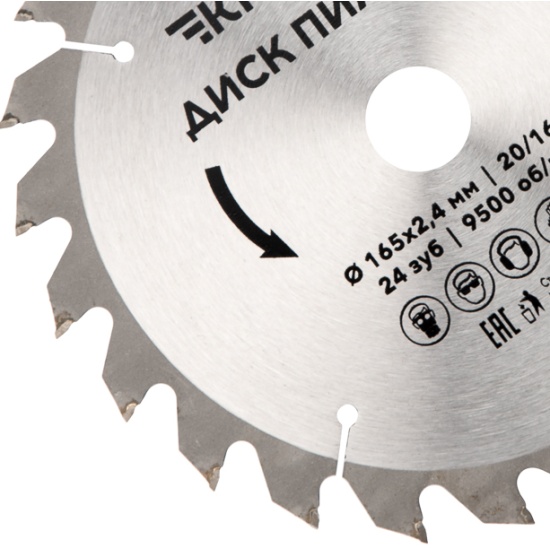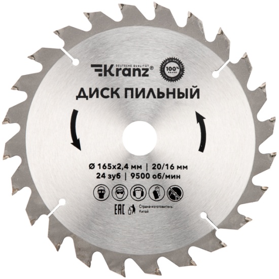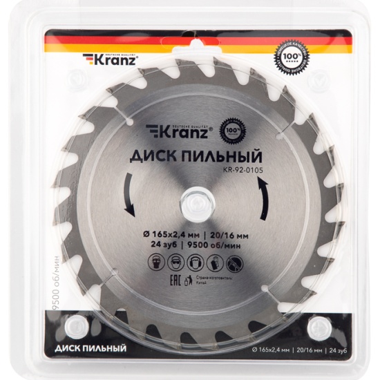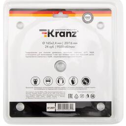 Диск пильный KRANZ диам. 165 мм, 24 зуб, посадка 20/16 мм KR-92-0105
