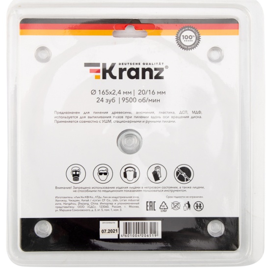 Пильный диск KRANZ предназначен для пиления древесины, алюминия, пластика, ДСП, МДФ. Используется для выпиливания пазов при пилении вдоль оси вращения диска. Применяется совместно с УШМ, стационарными и ручными пилами (особое внимание на допустимые обороты в минуту). Зубья оснастки оснащены твердосплавными напайками и имеют специальную заточку для качественной распиловки заготовок.