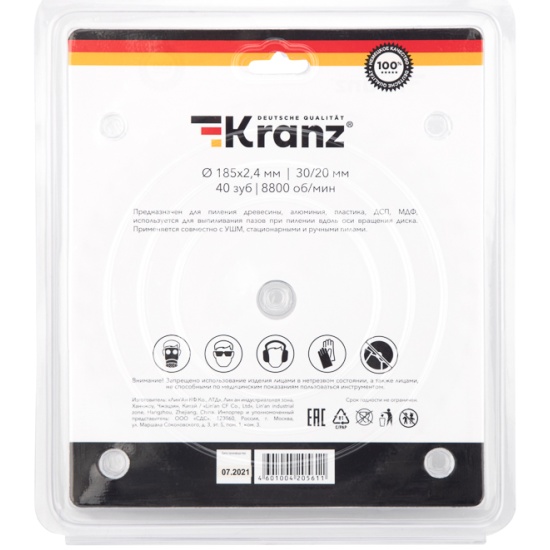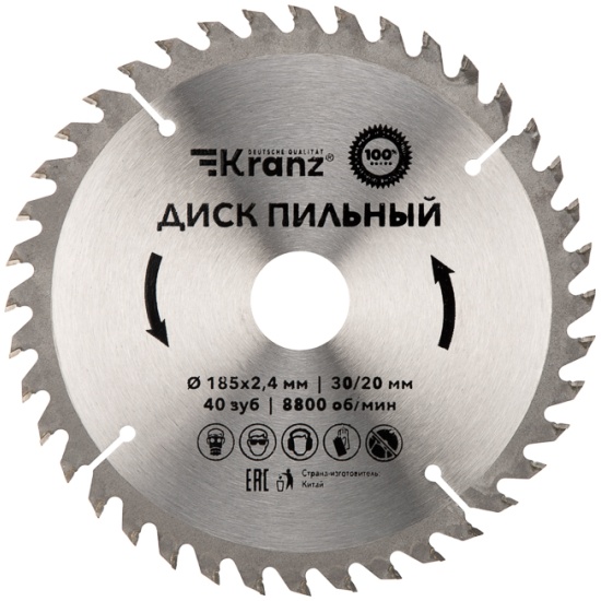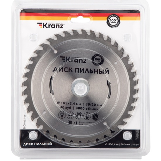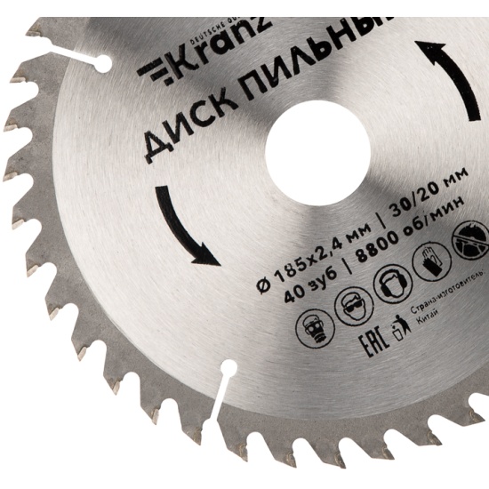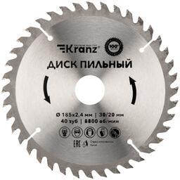 Диск пильный KRANZ диам. 185 мм, 40 зуб, посадка 30/20 мм KR-92-0111