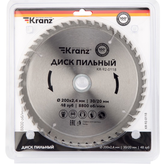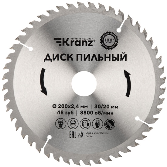 Диск пильный KRANZ диам. 200 мм, 48 зуб, посадка 30/20 мм KR-92-0118
