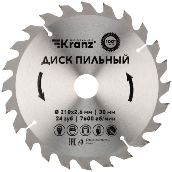 Диск пильный KRANZ диам. 210 мм, 24 зуб, посадка 30 мм KR-92-0120