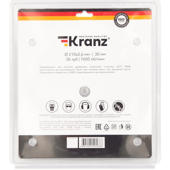 Пильный диск KRANZ предназначен для пиления древесины, алюминия, пластика, ДСП, МДФ. Используется для выпиливания пазов при пилении вдоль оси вращения диска. Применяется совместно с УШМ, стационарными и ручными пилами (особое внимание на допустимые обороты в минуту). Зубья оснастки оснащены твердосплавными напайками и имеют специальную заточку для качественной распиловки заготовок.