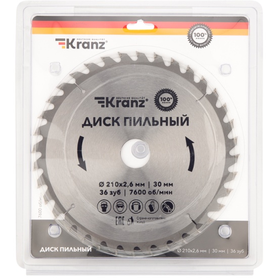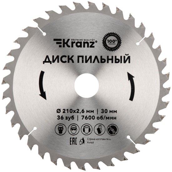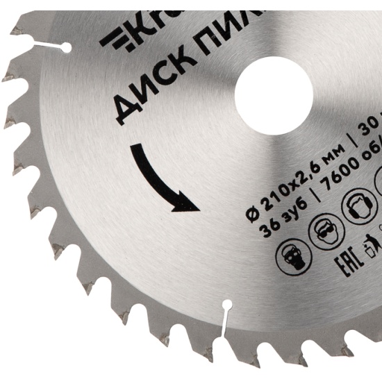 Диск пильный KRANZ диам. 210 мм, 36 зуб, посадка 30 мм KR-92-0121