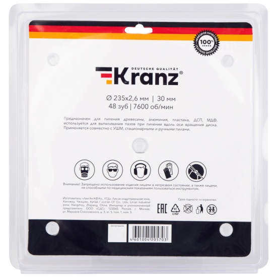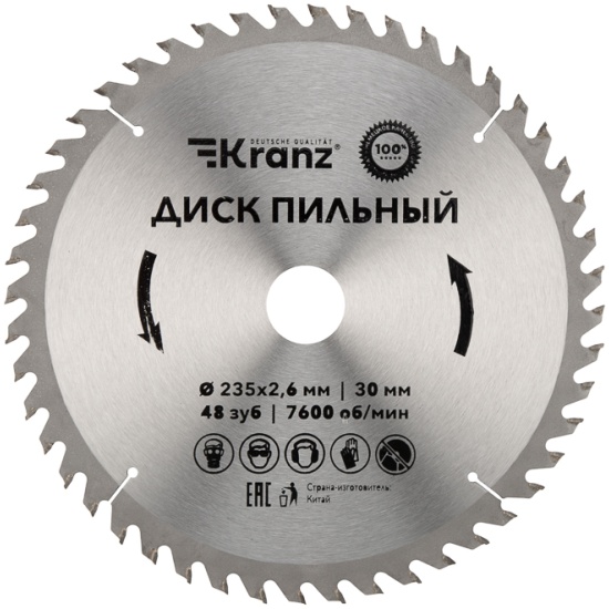 Диск пильный KRANZ диам. 235 мм, 48 зуб, посадка 30 мм KR-92-0125