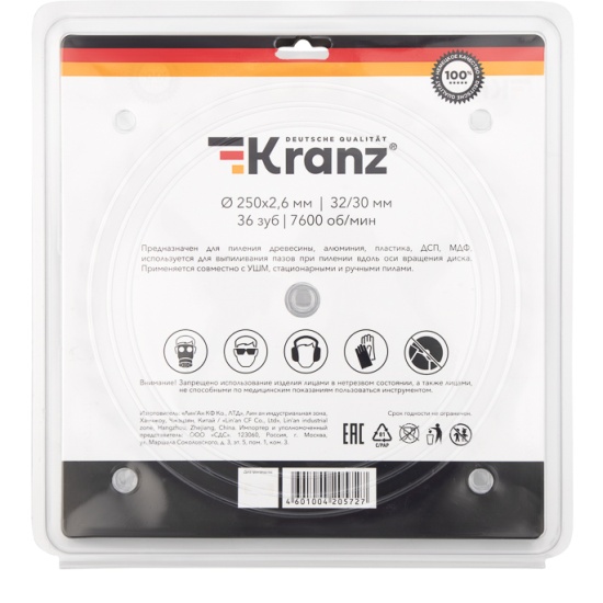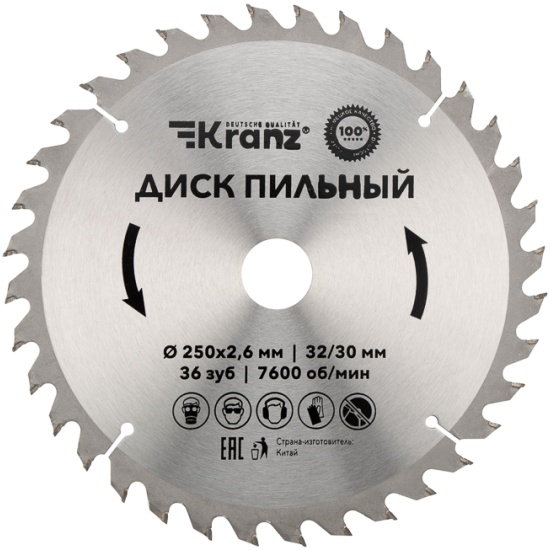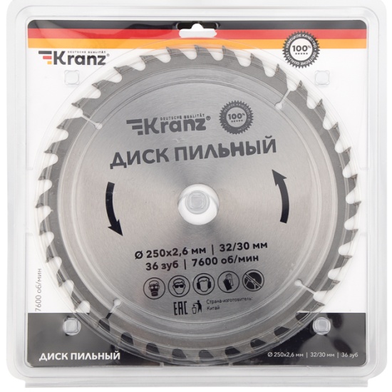 Диск пильный KRANZ диам. 250 мм, 36 зуб, посадка 32/30 мм KR-92-0127