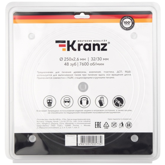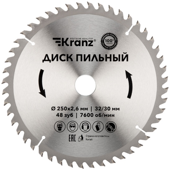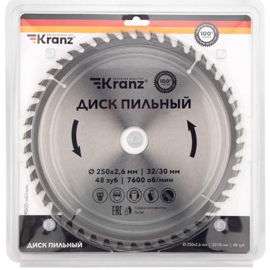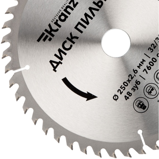 Диск пильный KRANZ диам. 250 мм, 48 зуб, посадка 32/30 мм KR-92-0128