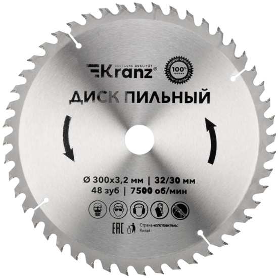 Диск пильный KRANZ диам. 300 мм, 48 зуб, посадка 32/30 мм KR-92-0133