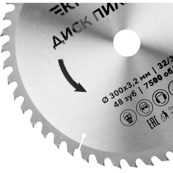 Характеристики:- оптимальная скорость вращения: 7500 об/мин- диаметр: 300 мм- диаметр посадочного отверстия: 32/30 мм- количество зубьев: 48- ширина пропила: 3.2 мм- тип зубьев: переменный наклон.