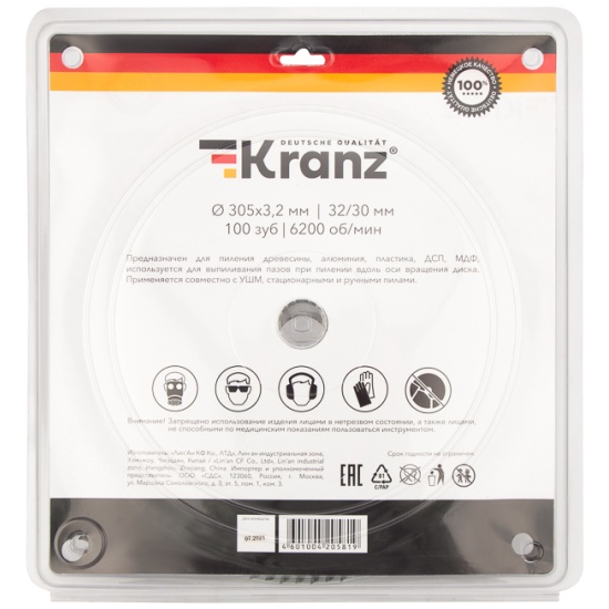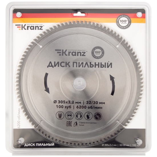 Диск пильный KRANZ диам. 305 мм, 100 зуб, посадка 32/30 мм KR-92-0136
