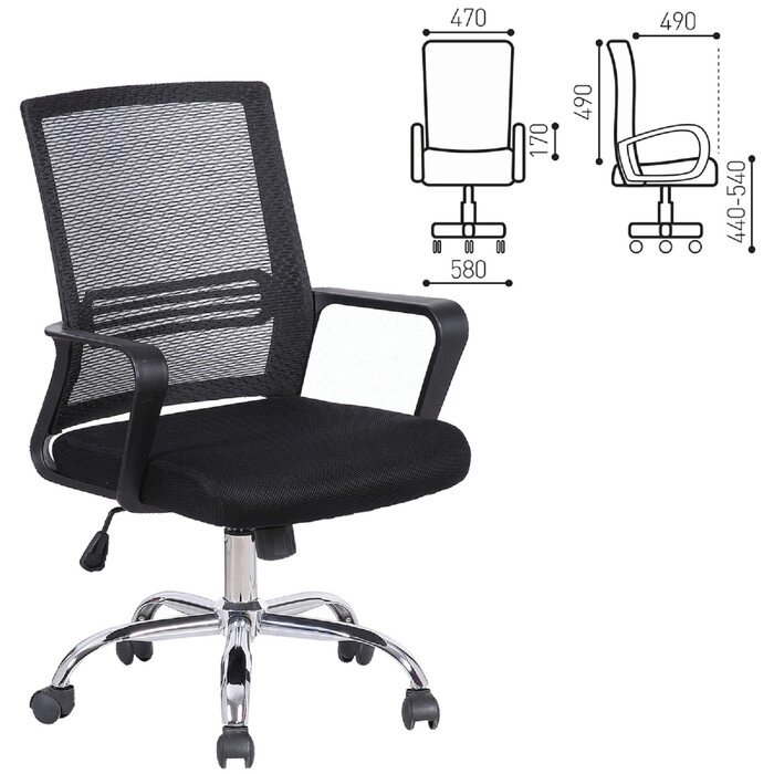 Кресло BRABIX "Daily MG-317", с подлокотниками, хром, черное