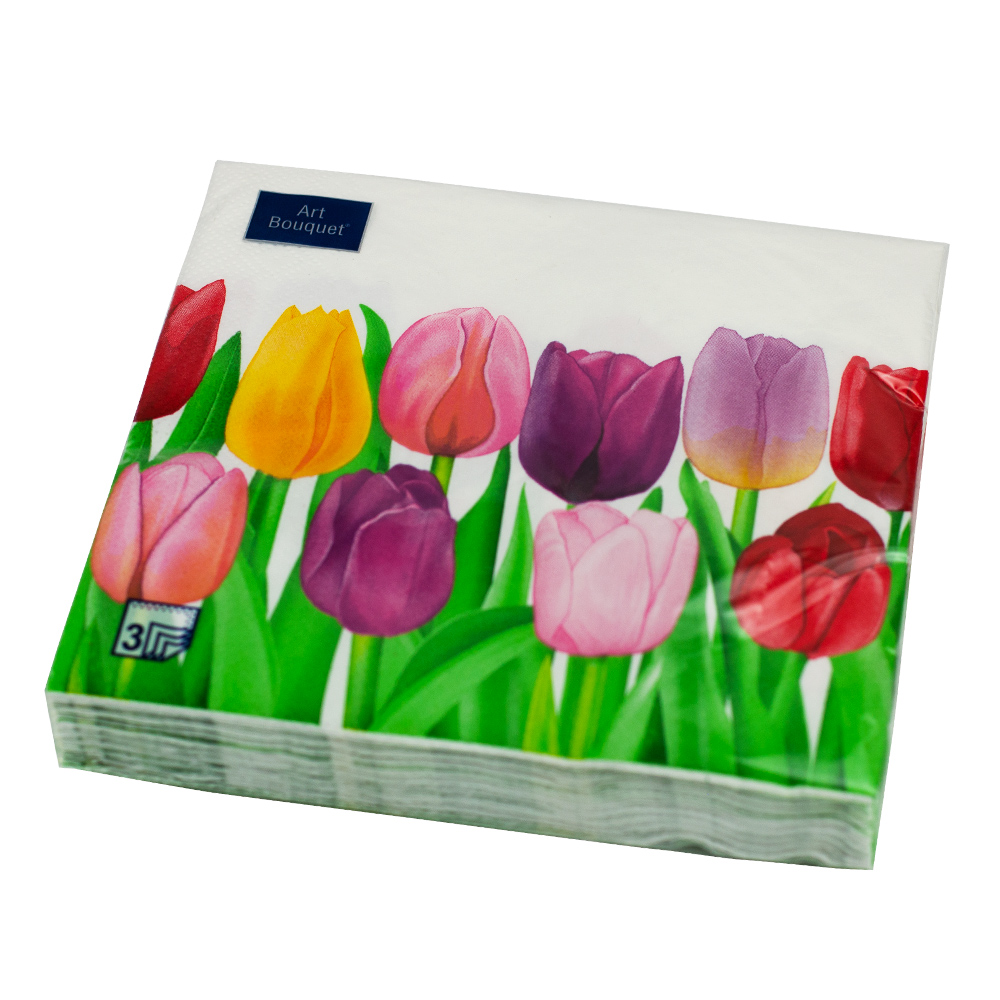 Салфетки бумажные "Море тюльпанов" 33x33см, 3 слоя, 20шт. Bouquet Art 57265