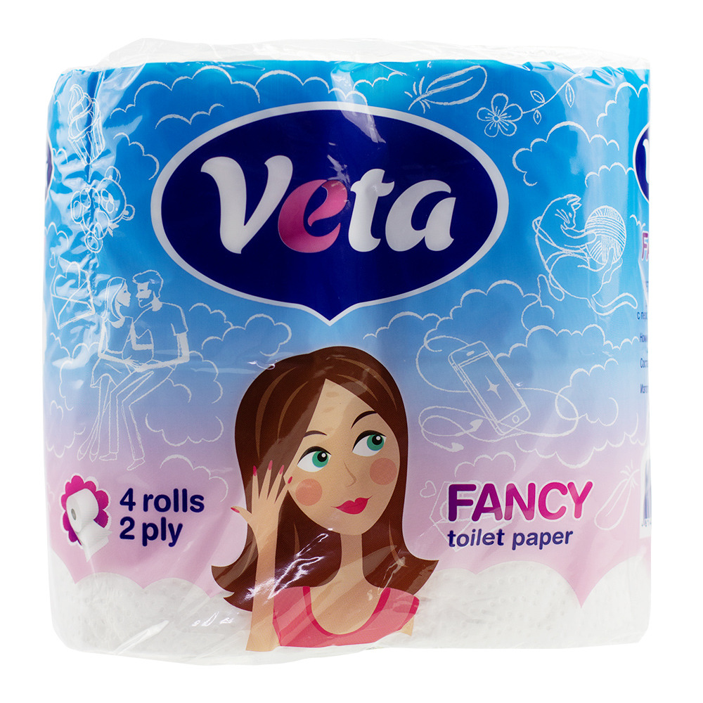 Бумага туалетная "Fancy" двухслойная, на втулке, 4 рулона Veta 4814003000181 50069898