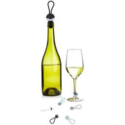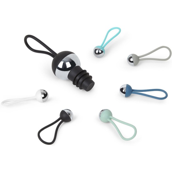 Комплект из пробки для винной бутылки и маркеров для бокалов. Когда бутылка открыта, пробку можно повесить на горлышко при помощи пластичной петли. Источником вдохновения для создания BAUBLE послужили обычные резинки для волос.