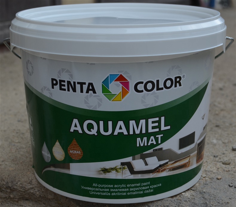 - Свойства Universalūs matiniai vandeniniai emaliniai dažai skirti medienai, medienos drožlių gaminiams, betoninėms ir mūrinėms sienoms, popieriui, metalui ir pan. paviršiams dažyti.