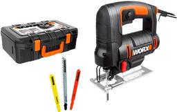 Электролобзик. Регулировка скорости, 550 Вт, рукоятка-скоба, глубина пропила: 65 мм (дерево), 6 мм (сталь), 3100 ходов/мин, ход пилки: 20 мм, 2.2 кг, кейс.