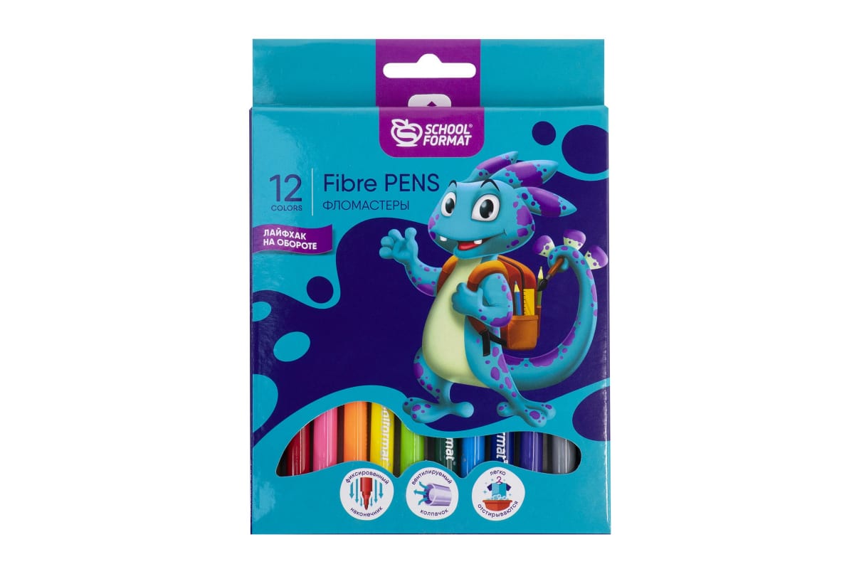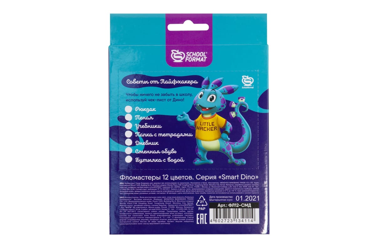 Фломастеры Schoolformat SMART DINO 12 цветов картонная упаковка, круглый корпус, стандартные ФЛ12-СМД предназначены для творчества и хобби.