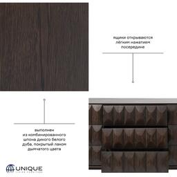 Комод Unique Furniture Latina 2 секции, 107х45х79 см (43403181)Фактурные фасады комода с уникальным рисунком добавят роскоши в любую комнату. Причудливая игра света передает мотивы середины XX века.Latina, покрытый лаком дымчатого цвета, изготовлен из комбинированного шпона дикого белого дуба и оборудован черными металлическими ножками. Секции поставляются в собранном виде.Чтобы продлить срок службы мебели и сохранить ее привлекательный вид, рекомендуется соблюдать ряд правил по уходу:1. Вытирать пыль нужно сухой мягкой тканью. При необходимости можно применить частичное протирание влажной тканью, смоченной простым раствором воды с добавлением мыла.Не используйте моющие средства и абразивные порошки. Это может привести к порче лакового покрытия и быстрому старению дерева.2. Не допускать попадания ацетона, растворителей и других химических веществ на поверхность мебели.3. Если на поверхность мебели пролилась вода, следует вытереть ее насухо мягкой тканью. 4. Нельзя ставить горячие предметы на столешницу.5. Периодически проверяйте исправность петель, замков и другой фурнитуры. При необходимости рекомендуется их регулировать, а также подкручивать крепежи, если они разболтались.