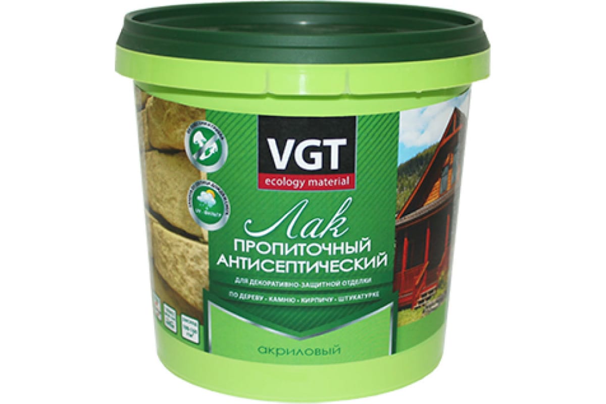 Пропиточный акриловый лак с антисептиком для дерева и камня VGT калужница, 0.9 кг 15068 предназначен для защитно-декоративной обработки различных поверхностей внутри и снаружи помещений.