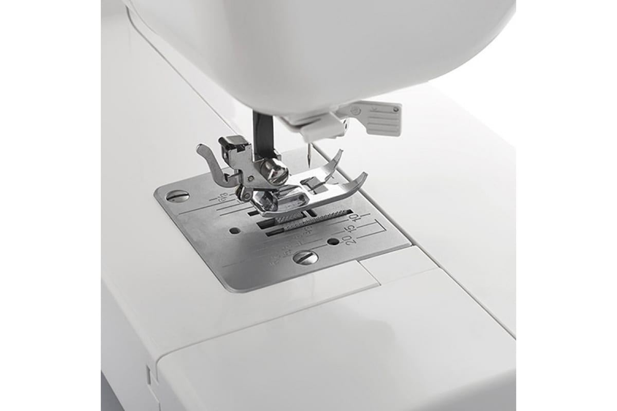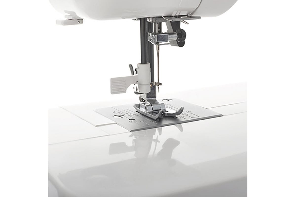 Удобный переключатель швейных операций расположен на уровне глаз. Нажимая клавишу реверс, можно шить в обратном направлении и сделать закрепку. Для пришивания пуговиц и выполнения свободно-ходовой стёжки есть переключатель нижнего транспортёра.