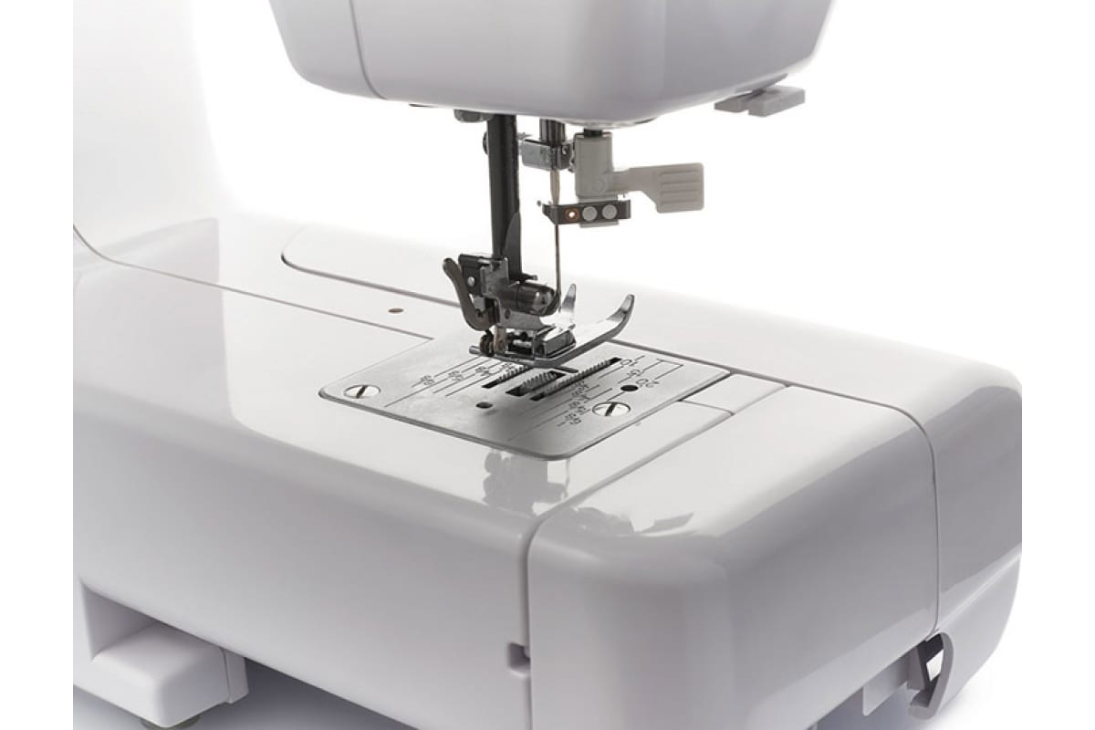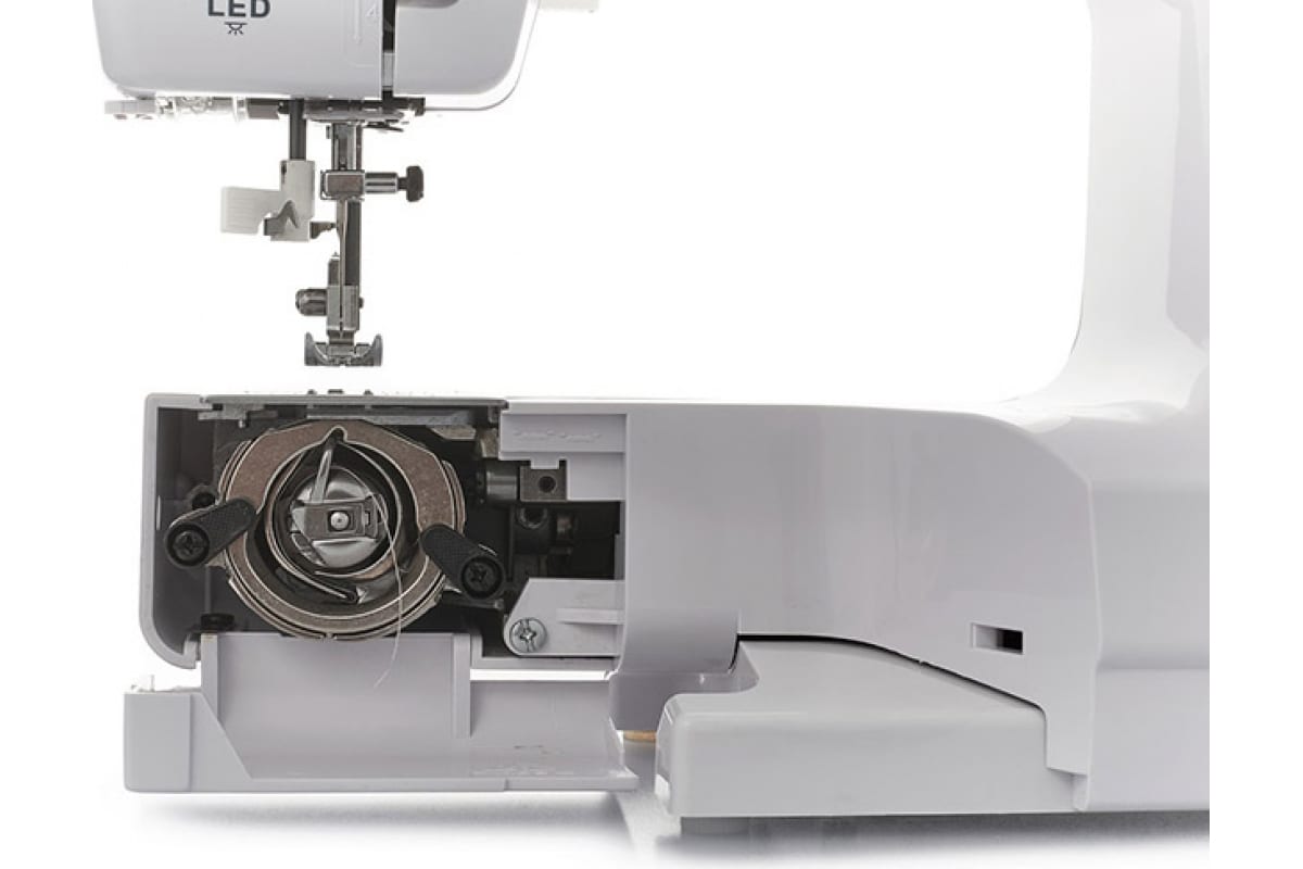 Данная модель проста в управлении, удобный переключатель швейных операций расположен на уровне глаз. С помощью встроенного нитевдевателя можно с лёгкостью вдеть нить в иглу.