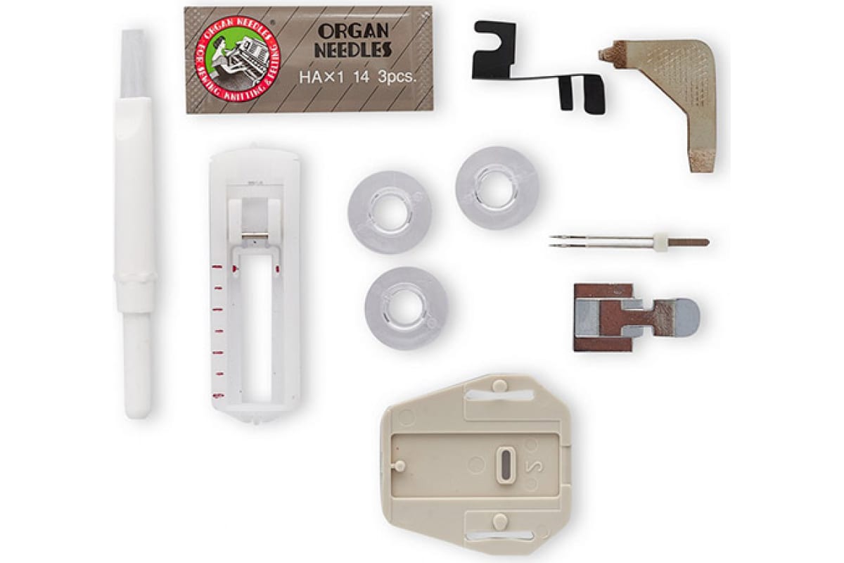С помощью клавиши реверс можно шить в обратном направлении и сделать закрепку. Во вместительном отсеке для хранения аксессуаров есть специальные держатели для шпулек.