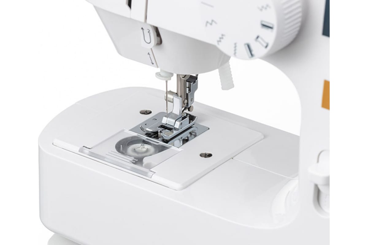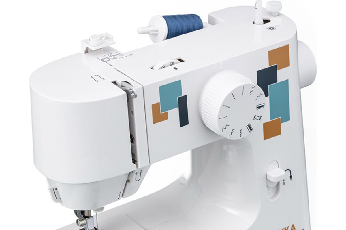 Машина обладает всем необходимым функционалом, выполняет 10 швейных операций включая петлю в полуавтоматическом режиме. Удерживая клавишу реверс, вы сможете шить в обратном направлении или сделать закрепку. Швейные операции выбираются поворотным регулятором.