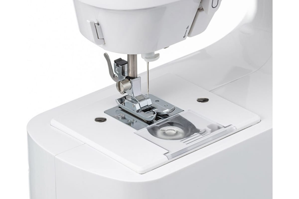 Удобный размер и простота в управлении, а также возможность работать как с педалью, так и от батареек, поможет погрузиться в мир шитья и рукоделия в любой обстановке.
