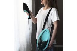 Утюг с базой и резервуаром для воды является мобильным и оснащён удобным ремнём, благодаря чему можно повесить базу с утюгом на плечо и отпарить вещи, передвигаясь по помещению.