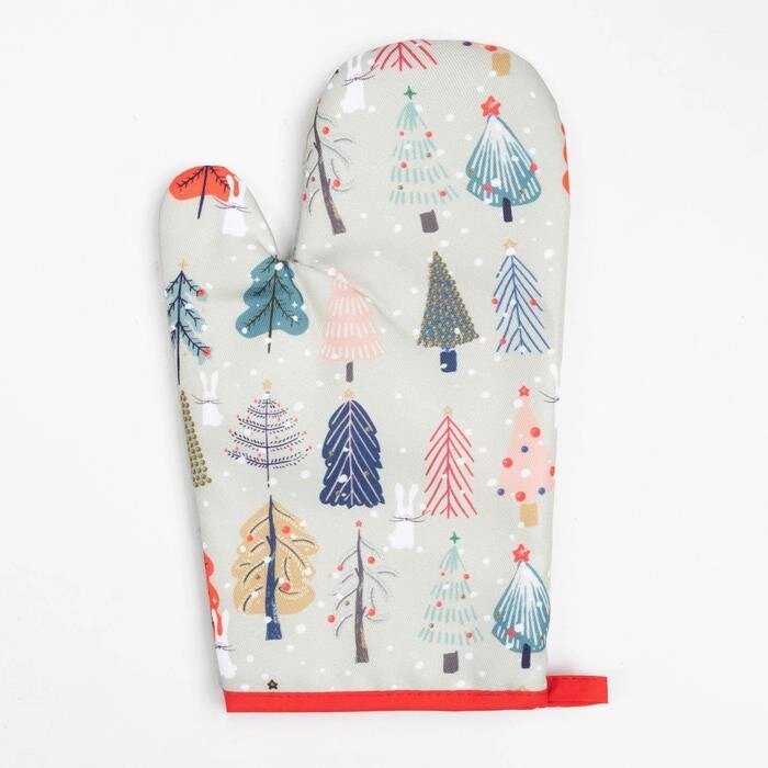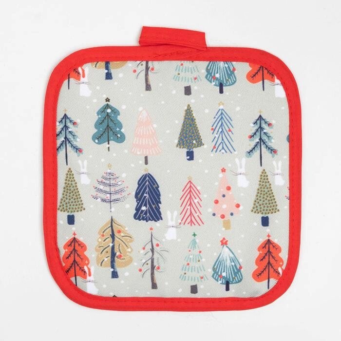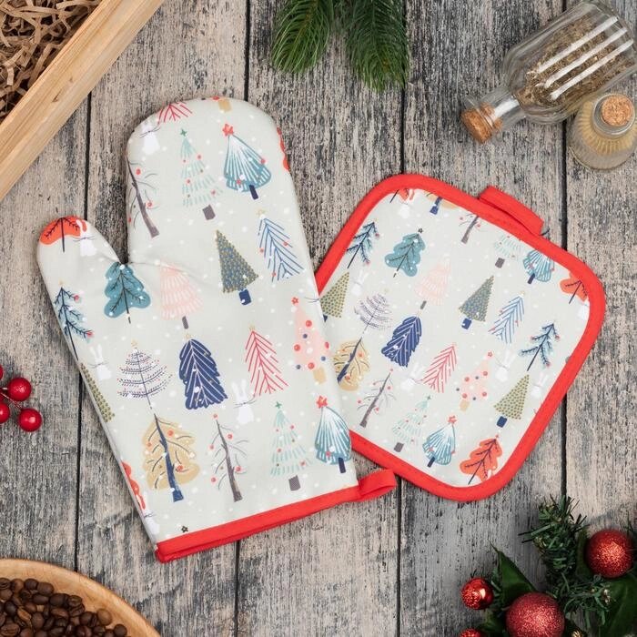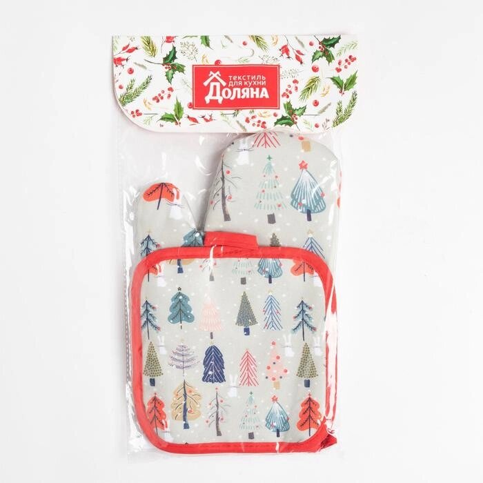 Кухонный новогодний набор Доляна "Новогодний лес", прихватка 17х17см, варежка-прихватка 26х16 см,100% п/э