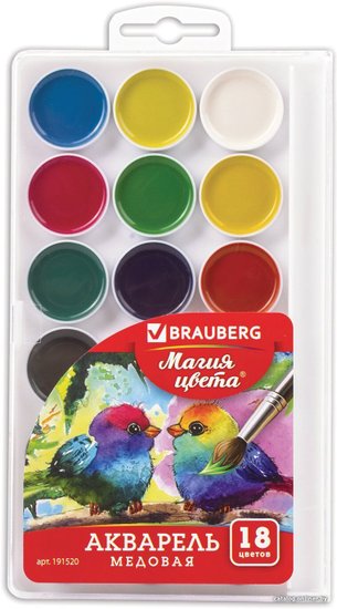 - Краски акварельные Brauberg применяются во многих сферах: на занятиях рисованием в школе, для иллюстраций, изображения пейзажей, на курсах живописи. Кисть в комплект не входит.Содержат 18 ярких цветов. Обладают отличной укрывистостью и высокой светоустойчивостью, прекрасно смешиваются и сохраняют яркость при высыхании. Отлично ложатся на бумагу. Изготовлены с добавлением патоки. Нетоксичны. Удобная круглая форма кюветов. Имеется отделение для кисточки. Поставляются в пластиковой коробке с европодвесом.Форма выпуска: палитра. Краски акварельные Brauberg применяются во многих сферах: на занятиях рисованием в школе, для иллюстраций, изображения пейзажей, на курсах живописи. Кисть в комплект не входит.Содержат 18 ярких цветов. Обладают отличной укрывистостью и высокой светоустойчивостью, прекрасно смешиваются и сохраняют яркость при высыхании. Отлично ложатся на бумагу. Изготовлены с добавлением патоки. Нетоксичны. Удобная круглая форма кюветов. Имеется отделение для кисточки. Поставляются в пластиковой коробке с европодвесом.Форма выпуска: палитра.