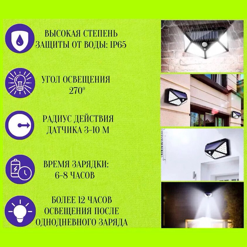 Уличный светильник с датчиком движения на солнечной батарее Solar Interaction Wall Lamp 100 LED