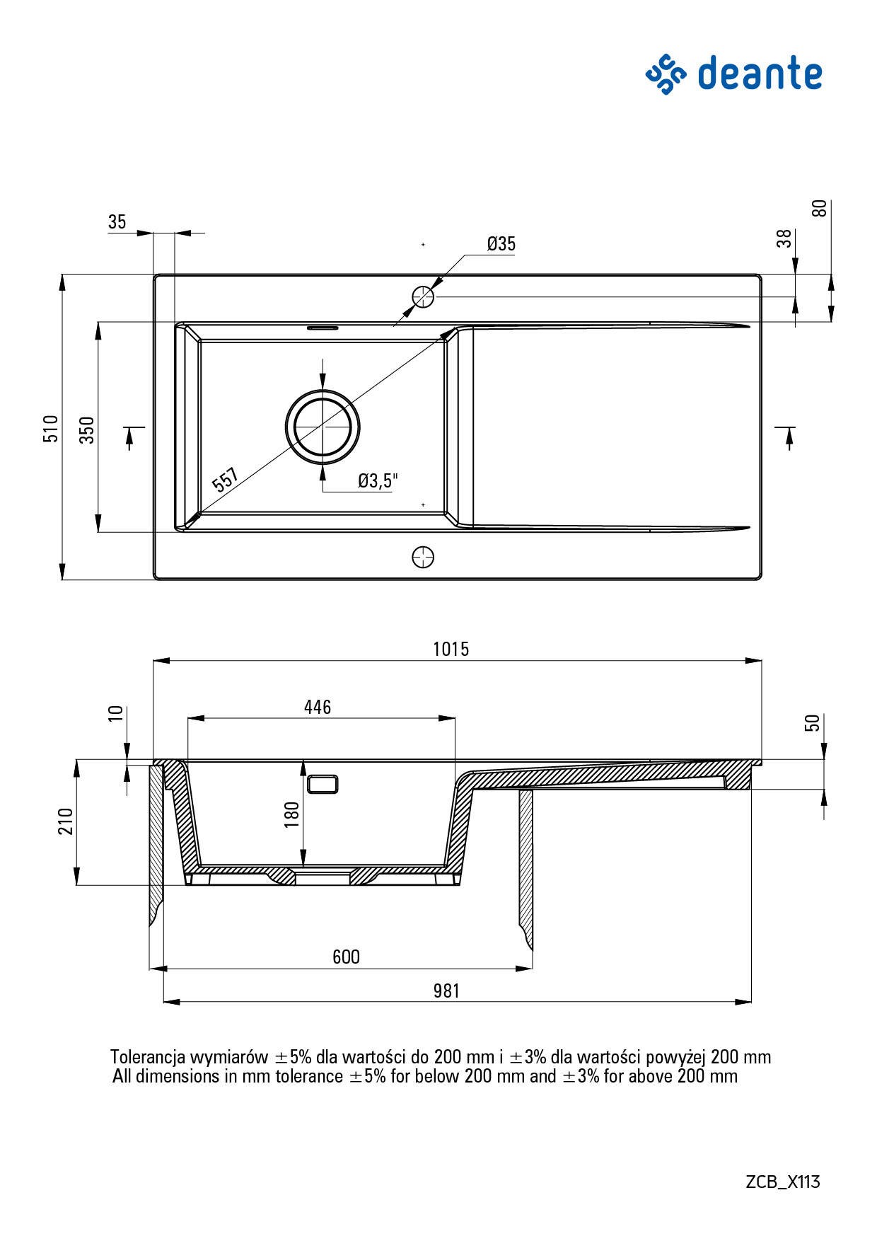 • Размеры врезного отверстия (накладная) 995x490 мм