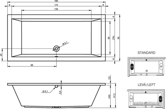 • Глубина ванны 44 см